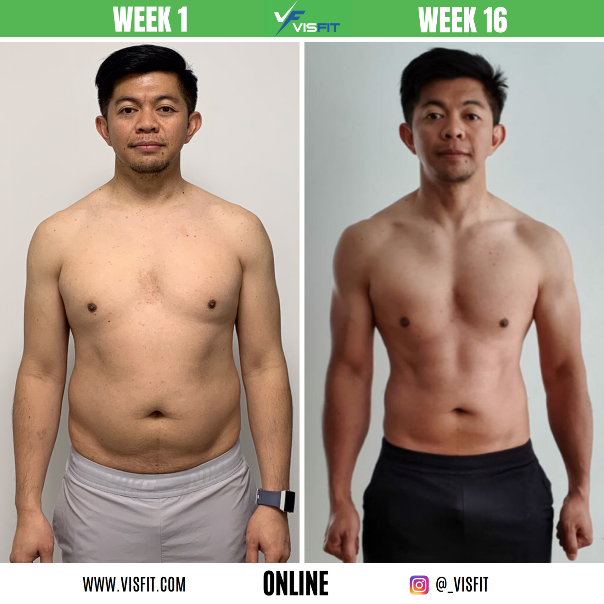 I've achieved great results. I have learnt a tremendous amount about diet and the exercises. This would not have been possible without the help of the Visfit team!'